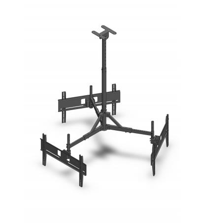 TAMA?O RECOMENDADO: 42" ~ 65" VESA MAXIMO: 600 X 400 PLACA DE MONTAJE AL TECHO GIRATORIA: 90º POSTE DE TECHO EXTENSIBLE: 66.9 ~ 106 cm POR SECCI?N DISTANCIA AJUSTABLE: 5 cm POR SECCI?N INCLINACION: 5º HACIA ARRIBA / 20º HACIA ABAJO COLOR: NEGRO FACIL DE ENSAMBLAR EMBALAJE COMPACTO PESO MAXIMO POR TV: 30 KILOS PESO MAXIMO TOTAL: 90 KILOS