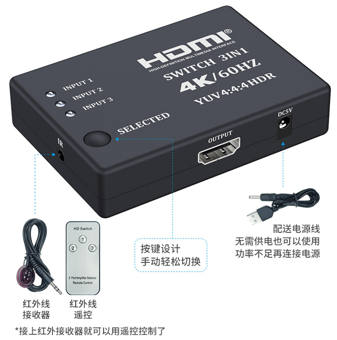 HDMI Switch te permite conectar hasta 3 dispositivos HDMI a tu TV, sin necesidad de conectar y desconectar cables.